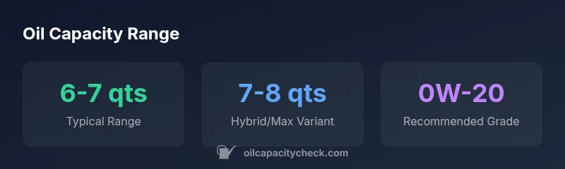 Oil capacity for the 2024 Toyota Tundra varies by engine and filter size, but the typical range is 6 to 7 quarts, with up to about 8 quarts for variants using a larger filter. For hybrid or high-performance trims, consult the owner's manual to confirm exact capacity. Oil Capacity Check analysis indicates engine-specific variations; always use the dipstick and manufacturer guidance.