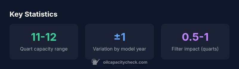 Typically 11–12 quarts with the filter installed. Exact capacity varies with pan size and filter type, so always verify with your manual or a VIN-based lookup.