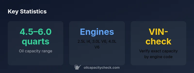 | 4.0L V6 | 5.5–6.0 quarts | With filter |