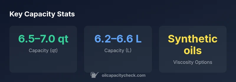 Capacity depends on the exact engine variant, but a common range is 6.5–7.0 quarts for a standard change with a new filter. Always confirm with the owner's manual or the VIN-specific service data.