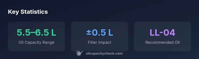 Capacity varies by variant and model year, typically around 5.5–6.5 liters including the filter. Always consult your VIN-specific service data.