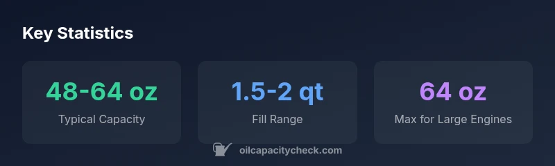 The capacity chart is designed to group engines by family and displacement, then show a capacity band that covers typical sump sizes. You’ll often see a lower bound in the 48-ounce range and an upper bound near 64 ounces for larger, higher-horsepower units. The chart also notes any special conditions—such as engines with oil filters or external coolers—that can shift the effective capacity slightly. When you pull up your model’s chart, identify the engine family first, then locate the corresponding capacity range. Use this baseline to plan your fill level and always validate with a dipstick after topping off.