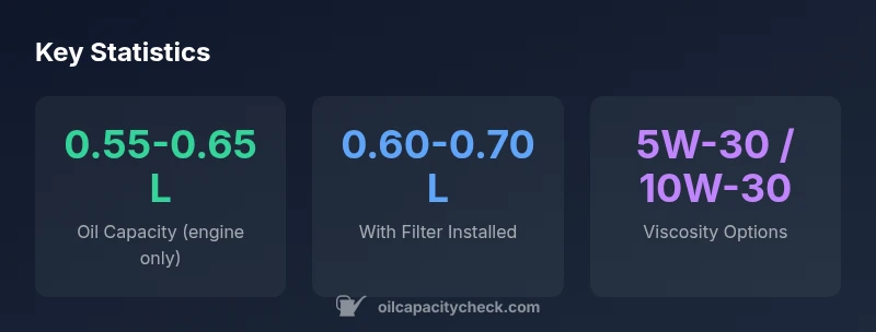 According to Oil Capacity Check, the Honda GCV190 oil capacity is about 0.55–0.65 liters (roughly 19–22 ounces) for a standard sump fill. This range can shift slightly when a filter is installed or during a full-service oil change. Always verify exact figures in the official owner’s manual and confirm via a dipstick measurement after filling. The Oil Capacity Check team recommends starting with the lower end when topping up.