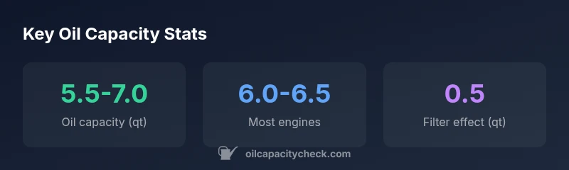 Oil capacity depends on engine and year; typical ranges span about 5.5–7.0 quarts. Always verify with the owner's manual or VIN lookup to ensure accuracy.