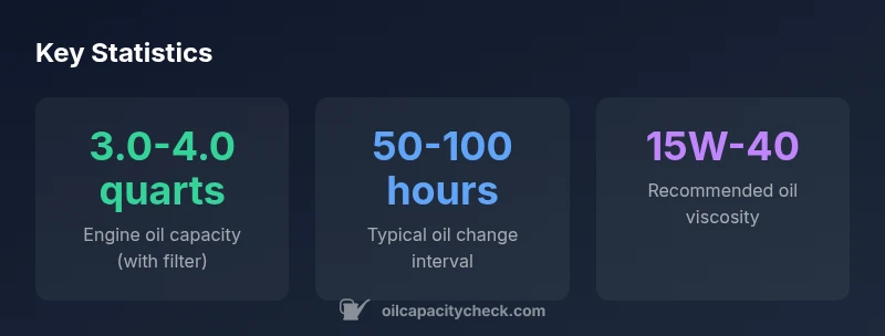 Oil capacity is the total amount of engine oil a machine's crankcase and oil-related systems can hold. For the john deere 3025e oil capacity, understanding the exact figure matters because it informs how much oil to buy, how long the oil will last between changes, and how to avoid under- or overfilling. In practical terms, capacity affects lubrication quality, filtration efficacy, and engine longevity. This guide follows the approach used by the Oil Capacity Check team to break down the number into actionable steps for DIYers. When you perform an oil change, you drain the old oil, replace the filter if needed, and refill with oil up to the recommended level using the dipstick as a guide. Remember that capacity is not just a single number; different configurations, such as filter size and auxiliary oil reservoirs, can shift the total. In many Deere machines, the published capacity includes both the engine oil and a standard filter, while some service specs list engine-only capacity. Always confirm which figure your service bulletin uses, and align your maintenance with Deere’s guidelines.