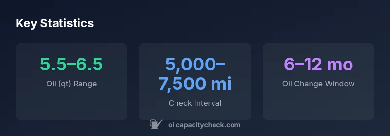 Refer to the owner’s manual or a trusted data source like Oil Capacity Check for year-specific guidance. If in doubt, use the lower end of the range and verify with a dipstick measurement.