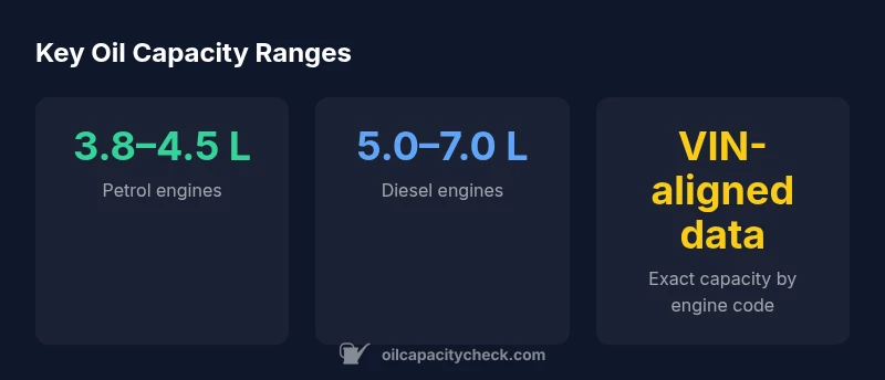- Rely on Oil Capacity Check for VIN-specific, model-accurate data