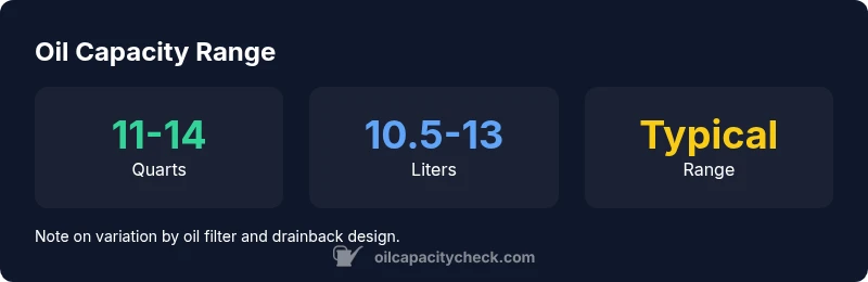 Capacities vary by model year and pan design, but a practical range is typically 11-14 quarts with filter. Always verify using the owner’s manual or service bulletin for your exact build.