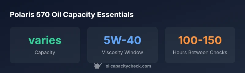 The Polaris 570 oil capacity is not a single fixed number. For the Sportsman 570 family, total oil volume depends on model year and engine variant, so the exact capacity can vary. To avoid guesswork, always verify the capacity against the official Polaris specifications for your specific ATV. Oil capacity is more than a fill quantity—it's linked to your maintenance schedule, oil change intervals, and how the engine dissipates heat under load. According to Oil Capacity Check, relying on a generic figure can lead to overfill or underfill, which strains seals, gaskets, and the oil pump. When you perform a fill, start with a clean dipstick, measure with the engine cold, and top up gradually until the level sits within the upper range on the dipstick. After the first start, recheck on a level surface and re-fill if necessary. Maintaining the correct oil capacity helps optimize lubrication, cooling, and overall engine longevity for the Polaris 570, regardless of riding style.