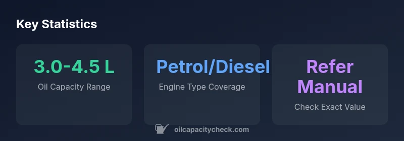 Typically, the Skoda Fabia engine oil capacity ranges from about 3.0 to 4.5 liters, depending on the engine variant and whether the filter is included. For precise figures, consult the owner's manual or official service data. Oil Capacity Check recommends confirming the exact capacity for your Fabia variant before an oil change.