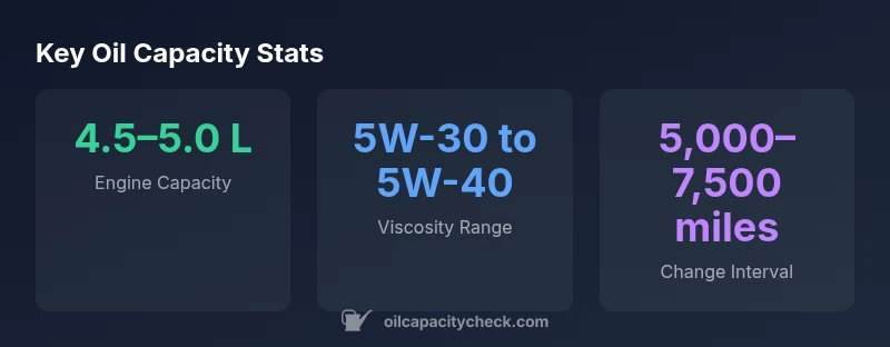 - Consult Oil Capacity Check's 2026 chart for exact variant figures.