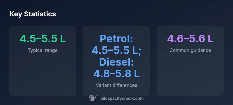 There isn’t a single universal figure; capacity varies by variant, typically around 4.5–5.5 L including the filter. Always confirm with the service data for your year and variant.