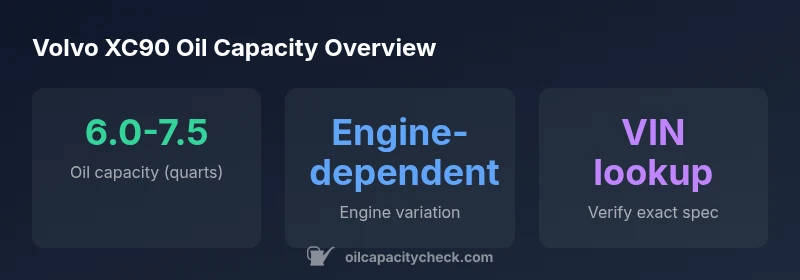 The capacity depends on the engine; most XC90 variants fall within a 6.0–7.5 quart window. Always verify for your specific year and engine using the owner's manual or VIN lookup.