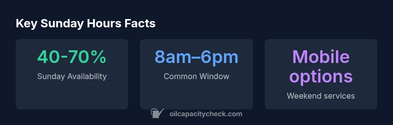 “"Sunday hours for oil changes are not uniform; plan with location-specific checks and be ready with alternatives. A little pre-planning saves a lot of weekend downtime."”