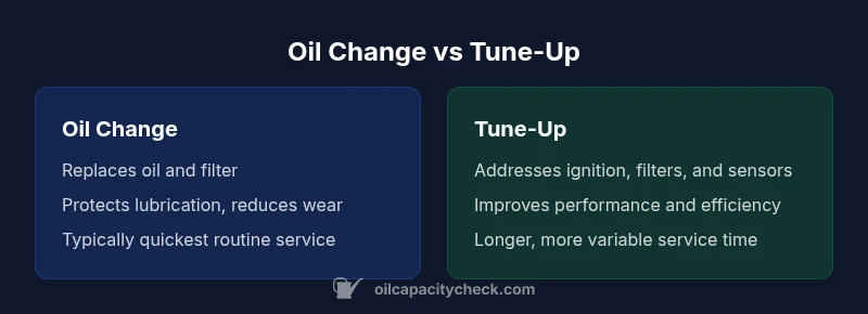 Explore the difference between oil change and tune up with clear definitions, timing guidance, and practical steps for DIYers and shop visits. Learn what to expect and how to plan maintenance.