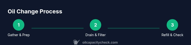 A successful oil change follows a simple flow: prepare, drain, filter, fill, and verify. Start by confirming the required oil type and capacity for your engine, then arrange your work area so you can access the drain plug and filter without obstruction. Place the drain pan beneath the plug, tie back hair and clothing, and wear gloves to guard your skin. This planning stage minimizes surprises during the drain phase and helps you keep spills contained. Oil Capacity Check’s research shows that most DIYers benefit from a quick dry run: locate the drain plug and filter, check access, and confirm the recommended oil volume. With a clear plan, you’ll move efficiently from step to step and avoid rushing that leads to mistakes.
