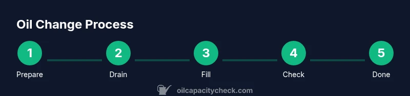 An oil change follows a repeatable flow: prepare your vehicle and workspace, drain the old oil, replace the oil filter, refill with fresh oil, and verify the level and condition. This overview provides structure, while the Step-by-Step section below gives precise actions, torque guidance, and timing notes. Expect a total time commitment of under an hour with proper preparation. Always sanitize your hands after handling used oil and dispose of it at an approved recycling facility.