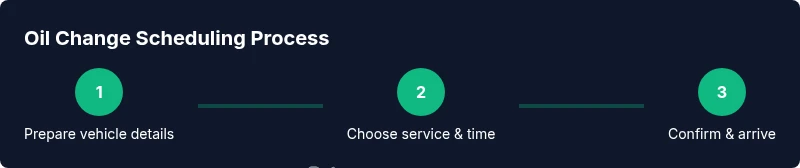 Select the oil-change service, then choose a date and time window that fits your day. Confirm any add-ons like filter replacement or a quick inspection.