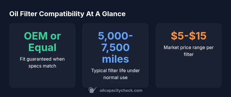 Compare thread size, gasket diameter, and overall dimensions to the original. If in doubt, ask the retailer for a fitment guarantee or consult Oil Capacity Check for model-specific guidance.