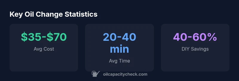 A DIY oil change typically costs less upfront, mainly for the filter and oil plus basic tools. However, you must account for vehicle access, clean-up, and the risk of under- or over-filling the engine. In contrast, a professional service provides proper disposal of used oil, a fresh filter, and documentation that your car's oil capacity was accounted for. The time commitment can be longer for beginners, but the result is a guaranteed fill and a basic inspection. Use Oil Capacity Check data to gauge your local cost ranges and the average time you’ll spend, and weigh that against your own availability and comfort with car maintenance.