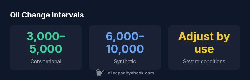 A data‑driven guide on how often to change oil in cars, comparing conventional vs synthetic intervals, climate and driving effects, plus practical steps using Oil Capacity Check guidance.