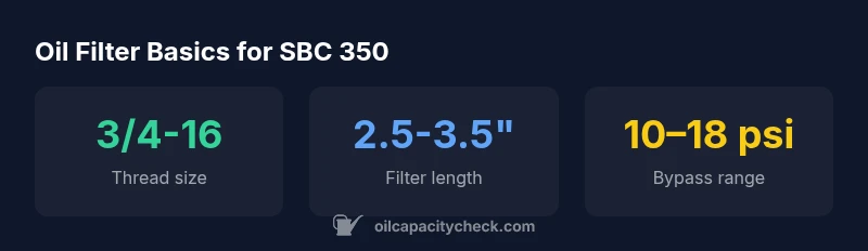 “The right oil filter isn’t a guess—thread size, bypass design, and length determine compatibility. Start with your existing filter and verify against the SBC 350’s specifications.”