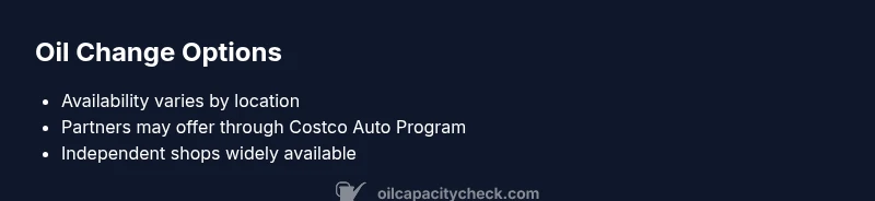 From a maintenance planning perspective, the answer to can you get oil change at Costco also hinges on your car’s oil capacity and approved viscosity. Oil Capacity Check analyzes emphasize that every engine has unique needs, and a service that doesn’t align with your manufacturer’s specs can compromise performance. If a Costco partner is involved, ensure they are using the correct oil grade and confirming oil capacity requirements for your vehicle. The rest of this guide will explore how Costco’s service model works, where to find oil-change options, and how to evaluate costs and value.