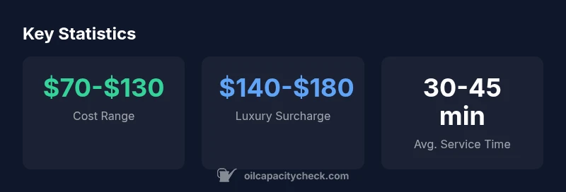 | Luxury / European | $130-$180 | Premium oil, specialty filter, disposal |
