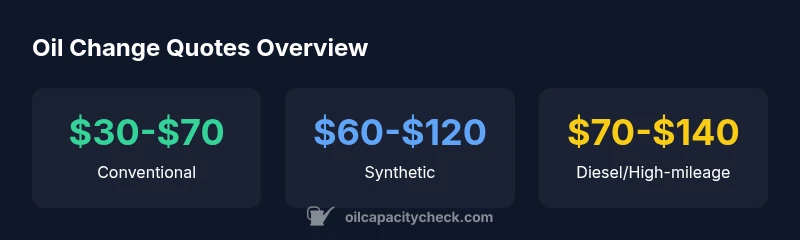Understand oil change quotes near me, compare conventional vs synthetic options, and learn smart shopping tips to save money without sacrificing service quality. A data-driven guide from Oil Capacity Check.