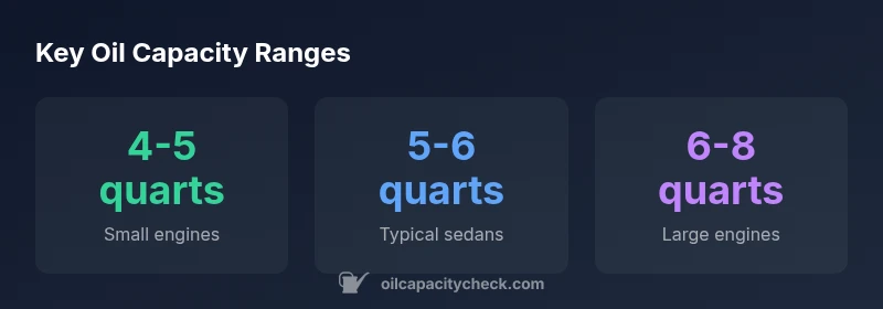 Engine oil capacity by reg varies by engine size and configuration, but for most light-duty cars the capacity falls in the 5-6 quart range. Larger V6/V8 engines typically require 6-8 quarts, while small four-cylinder engines often use 4-5 quarts. Always confirm capacity from the owner's manual or a trusted data source, and remember to account for oil filter and pan displacement.