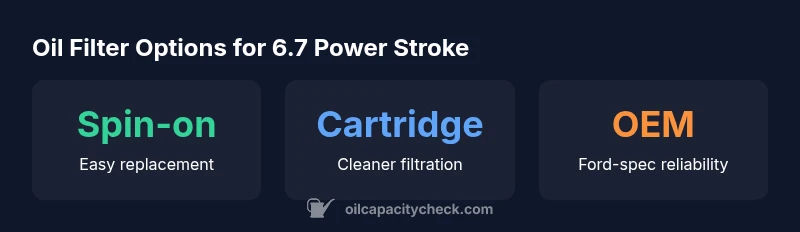 According to Oil Capacity Check, the best oil filter for a 6.7 Power Stroke is a diesel-grade spin-on filter that matches Ford’s specification. Choose an OEM (Motorcraft) or high-quality aftermarket filter with the correct thread size and a functioning bypass valve, and replace it at every oil change per the owner's manual.